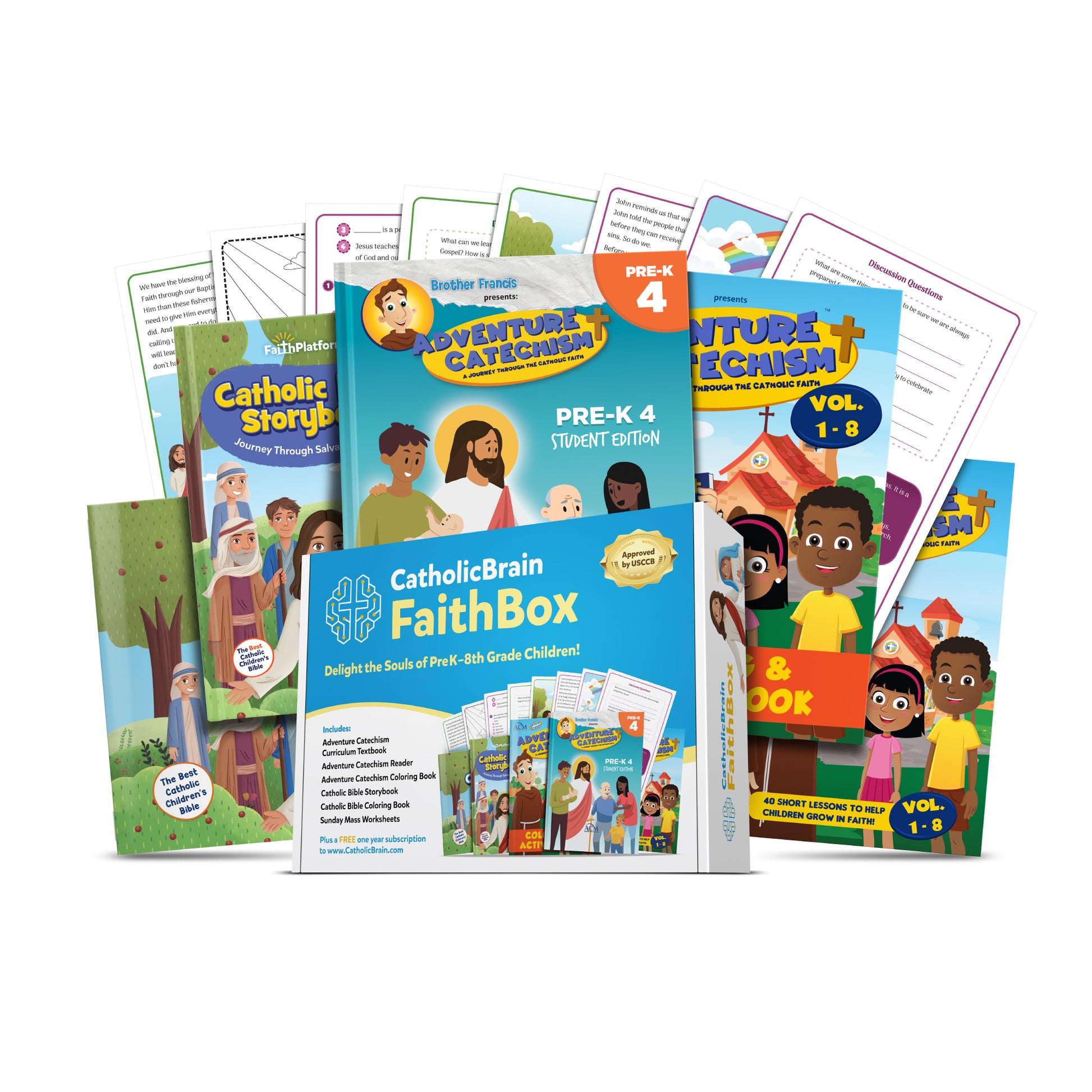 Invest in your child’s faith journey today with the CatholicBrain Faith Box, and give them the tools to grow in their relationship with God, learn the teachings of the Church, and actively participate in the Catholic faith.