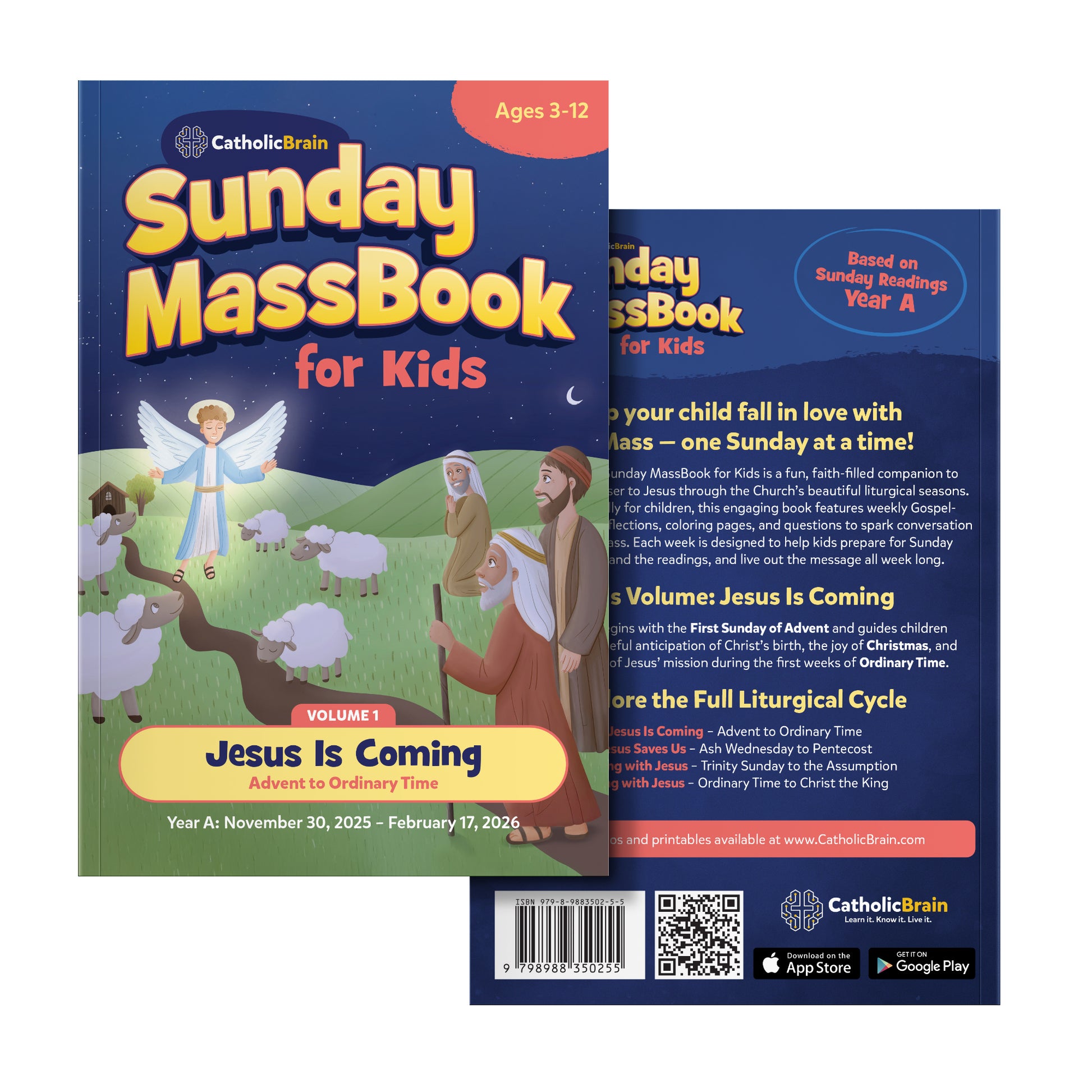 Start the liturgical year with joy and anticipation! CatholicBrain Sunday Mass for Kids – Volume 1: Jesus is Coming walks children through Advent to Ordinary Time (Nov 30, 2025 – Feb 17, 2026), helping them prepare their hearts for the coming of Jesus and grow in understanding of the Mass.