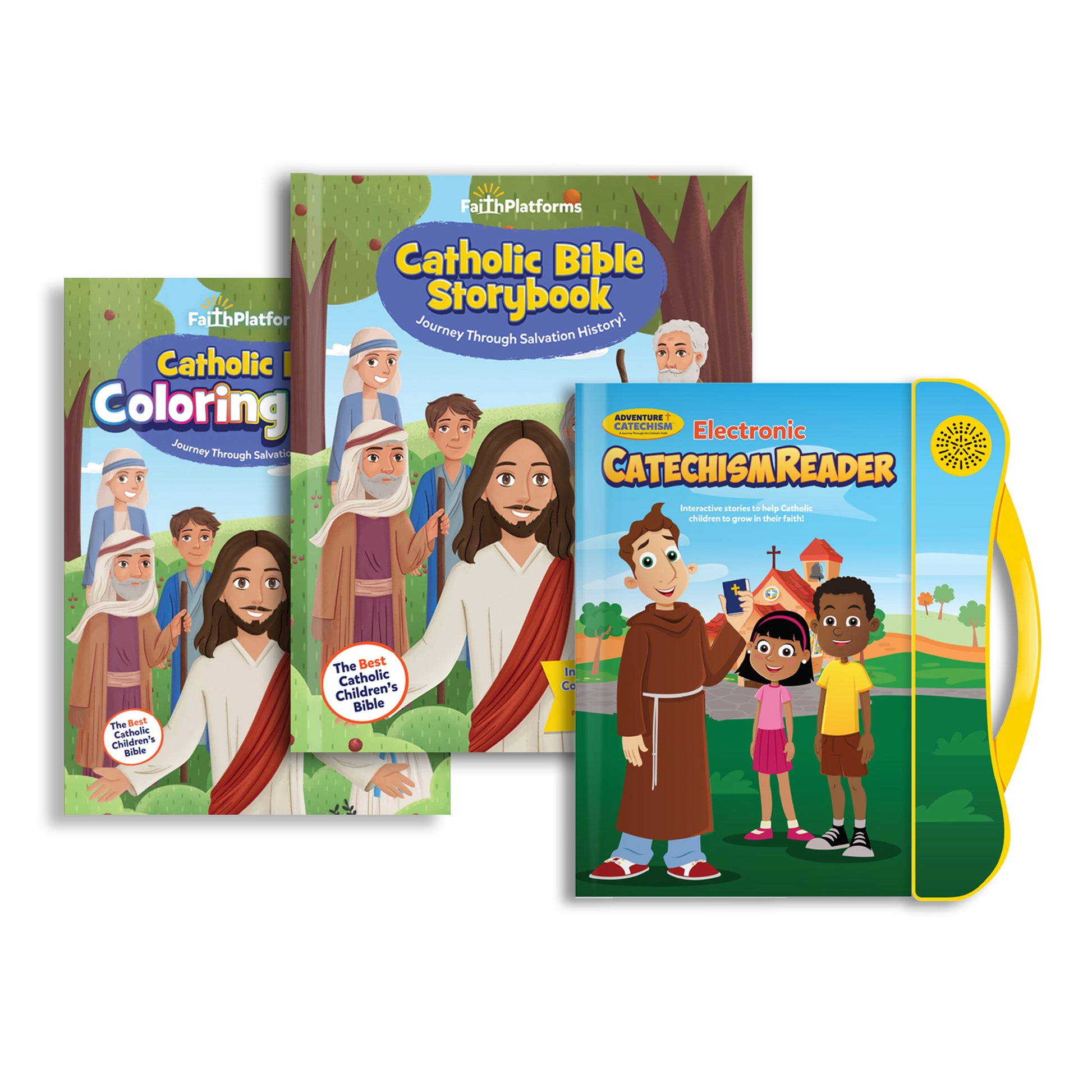 Includes 1 each of the Bible Storybook, Coloring Book, and Catechism eReader, as well as a 1-year Individual Subscription to Catholic Brain.